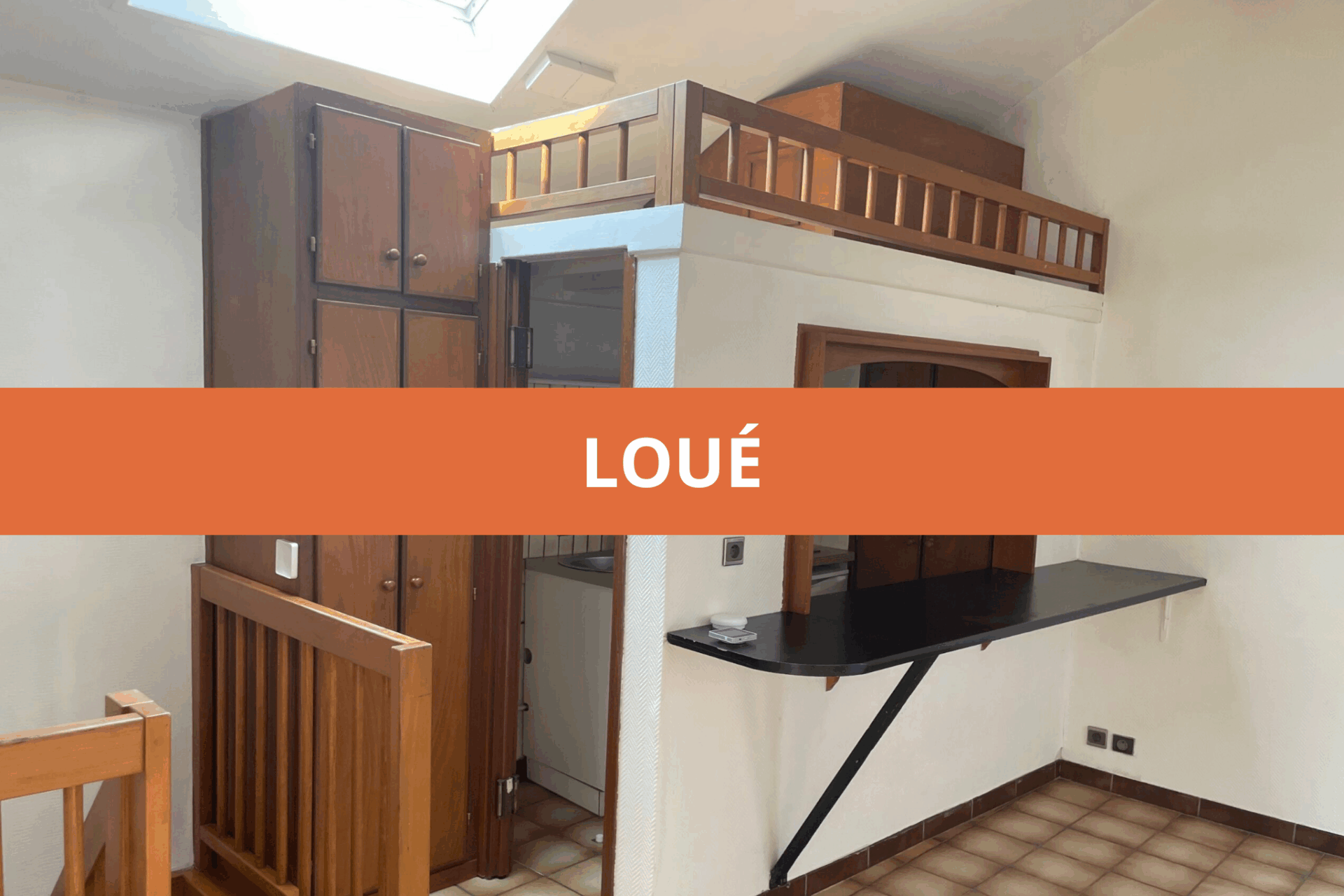 A l’étage principal: une kitchenette équipée ouverte sur la pièce à vivre, un placard de rangement,